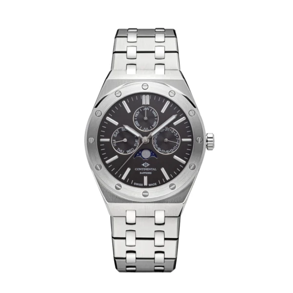 The CONTINENTAL Gent’s Grey Dial Stainless Steel Bracelet Moonphase Watch 21501-GM101680 will arrive in a CONTINENTAL brand watch box. In addition, this Swiss Made Luxury Watch comes with a two year international warranty from the manufacturer. The warranty covers the watch from any manufacturing defects. Please refer to the ‘Instruction Booklet & International Guarantee’ booklet for more information.