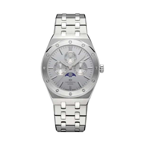 The CONTINENTAL Gent’s Silver Dial Stainless Steel Bracelet Moonphase Watch 21501-GM101130 will arrive in a CONTINENTAL brand watch box. In addition, this Swiss Made Luxury Watch comes with a two year international warranty from the manufacturer. The warranty covers the watch from any manufacturing defects. Please refer to the ‘Instruction Booklet & International Guarantee’ booklet for more information.
