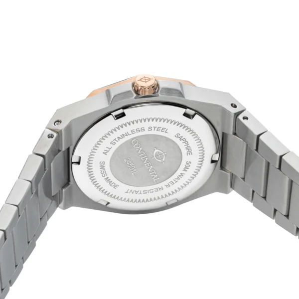 The CONTINENTAL Ladies Silver Two Tone Rose Gold PVD Stainless Steel Bracelet Dress Watch 24501-LD815130 will arrive in a CONTINENTAL brand watch box. In addition, this Swiss Made Luxury Watch comes with a two year international warranty from the manufacturer. The warranty covers the watch from any manufacturing defects. Please refer to the ‘Instruction Booklet & International Guarantee’ booklet for more information.