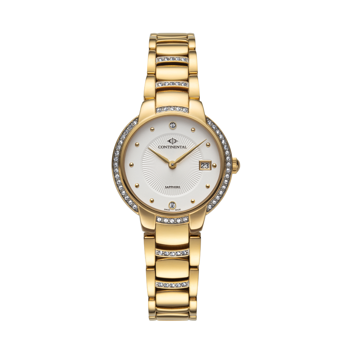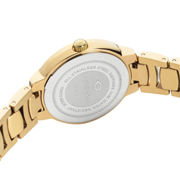 The CONTINENTAL Ladies Silver Dial Yellow Gold PVD Stainless Steel Bracelet Dress Watch 24002-LD202101 will arrive in a CONTINENTAL brand watch box. In addition, this Swiss Made Luxury Watch comes with a two year international warranty from the manufacturer. The warranty covers the watch from any manufacturing defects. Please refer to the ‘Instruction Booklet & International Guarantee’ booklet for more information.