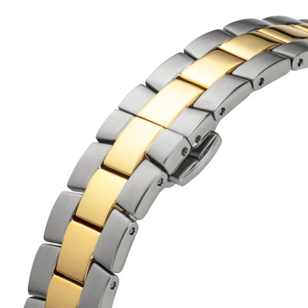 This Swiss Made Luxury Women’s watch has a battery operated Swiss Quartz movement for unrivalled accuracy. In addition, the watch has a 3-link metal bracelet with a Butterfly Buckle, with push-buttons for extra security. This White Dial watch for Women benefits from a Water Resistance of 50 metres, making it suitable for swimming. Conversely, it is not suitable for water sports, diving or swimming in the sea.