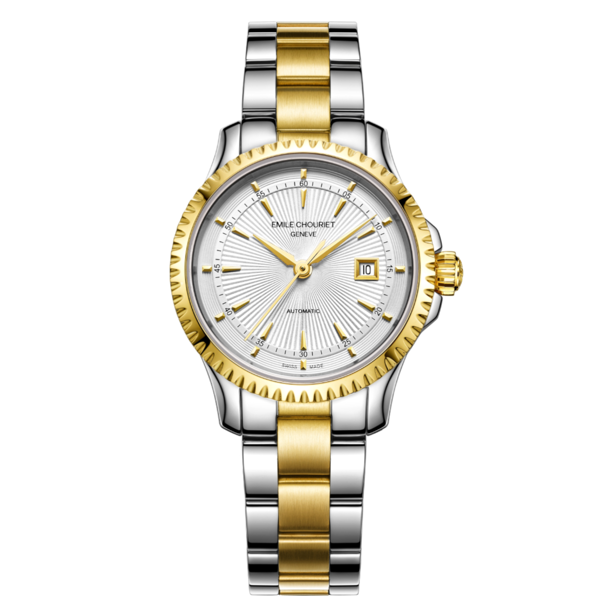 The EMILE-CHOURIET Ailes du Temps Ladies White Dial Two Tone Yellow Gold Stainless Steel Bracelet Automatic Dress Watch 06.1155.L.6.0.28.0 will arrive in an EMILE CHOURIET brand watch box. In addition, it comes with a five year international warranty from the manufacturer. EMILE CHOURIET is an established and independent Swiss watch manufacturer, launched in 1998, in Geneva. For more information on the watch brand, please visit the manufacturer’s website. Furthermore, you can view our dedicated EMILE CHOURIET brand page for more designs from this brand.