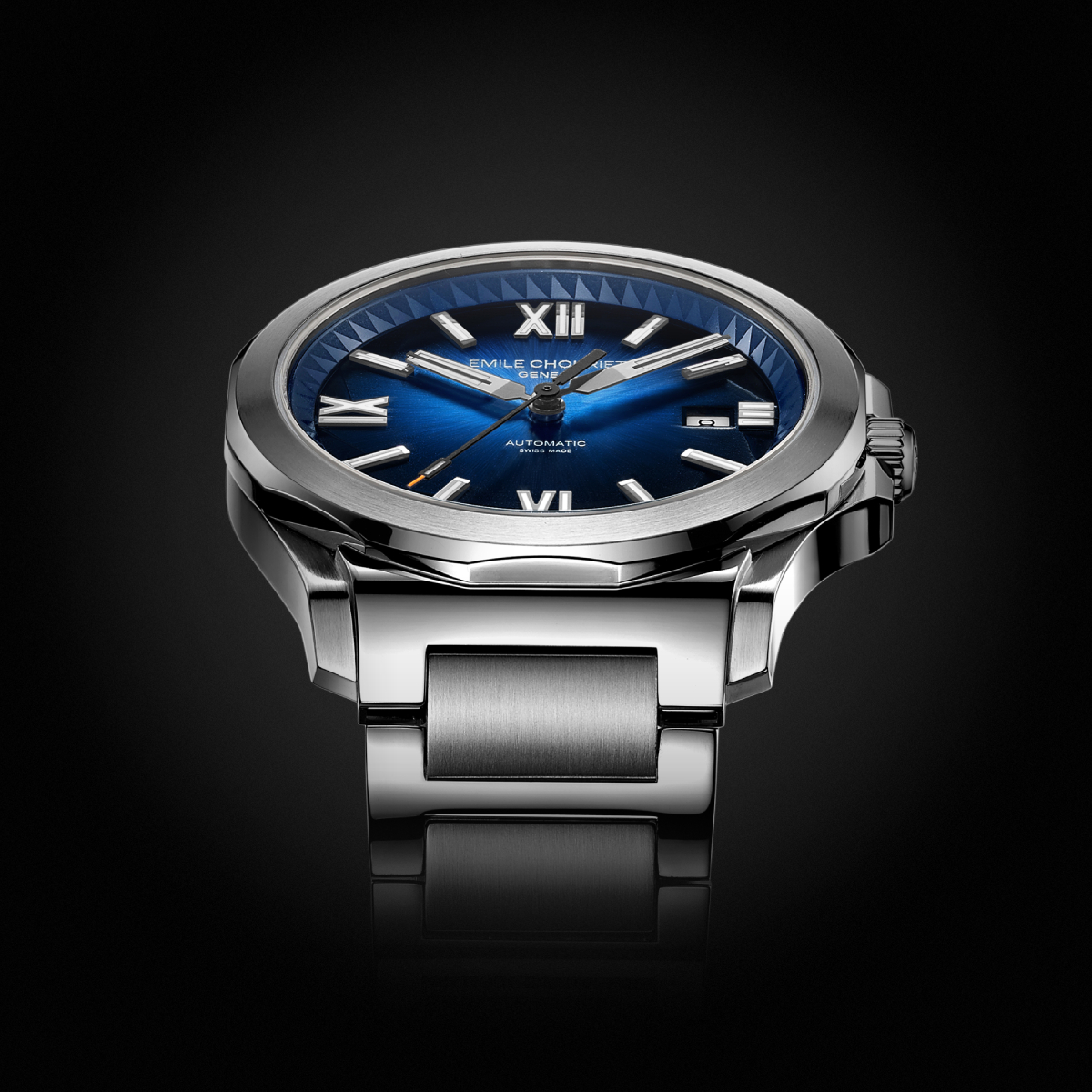 The EMILE-CHOURIET Challenger Cliff Gent’s Blue Dial Stainless Steel Automatic Sports Watch 08.1170.G.6.6.N8.6 will arrive in an EMILE CHOURIET brand watch box. In addition, it comes with a five year international warranty from the manufacturer. EMILE CHOURIET is an established and independent Swiss watch manufacturer, launched in 1998, in Geneva. For more information on the watch brand, please visit the manufacturer’s website. Furthermore, you can view our dedicated EMILE CHOURIET brand page for more designs from this brand.