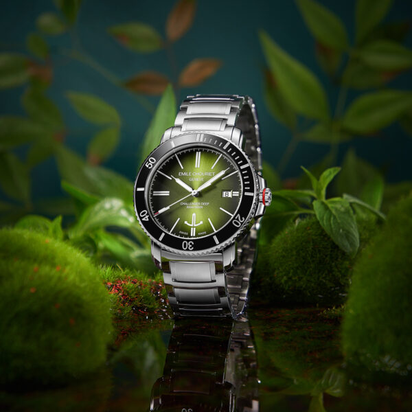 The EMILE-CHOURIET Challenger Deep Gent’s Green Dial Stainless Steel Bracelet Automatic Dive Watch 08.1169.G.6.AW.E8.6 will arrive in an EMILE CHOURIET brand watch box. In addition, it comes with a five year international warranty from the manufacturer. EMILE CHOURIET is an established and independent Swiss watch manufacturer, launched in 1998, in Geneva. For more information on the watch brand, please visit the manufacturer’s website. Furthermore, you can view our dedicated EMILE CHOURIET brand page for more designs from this brand.