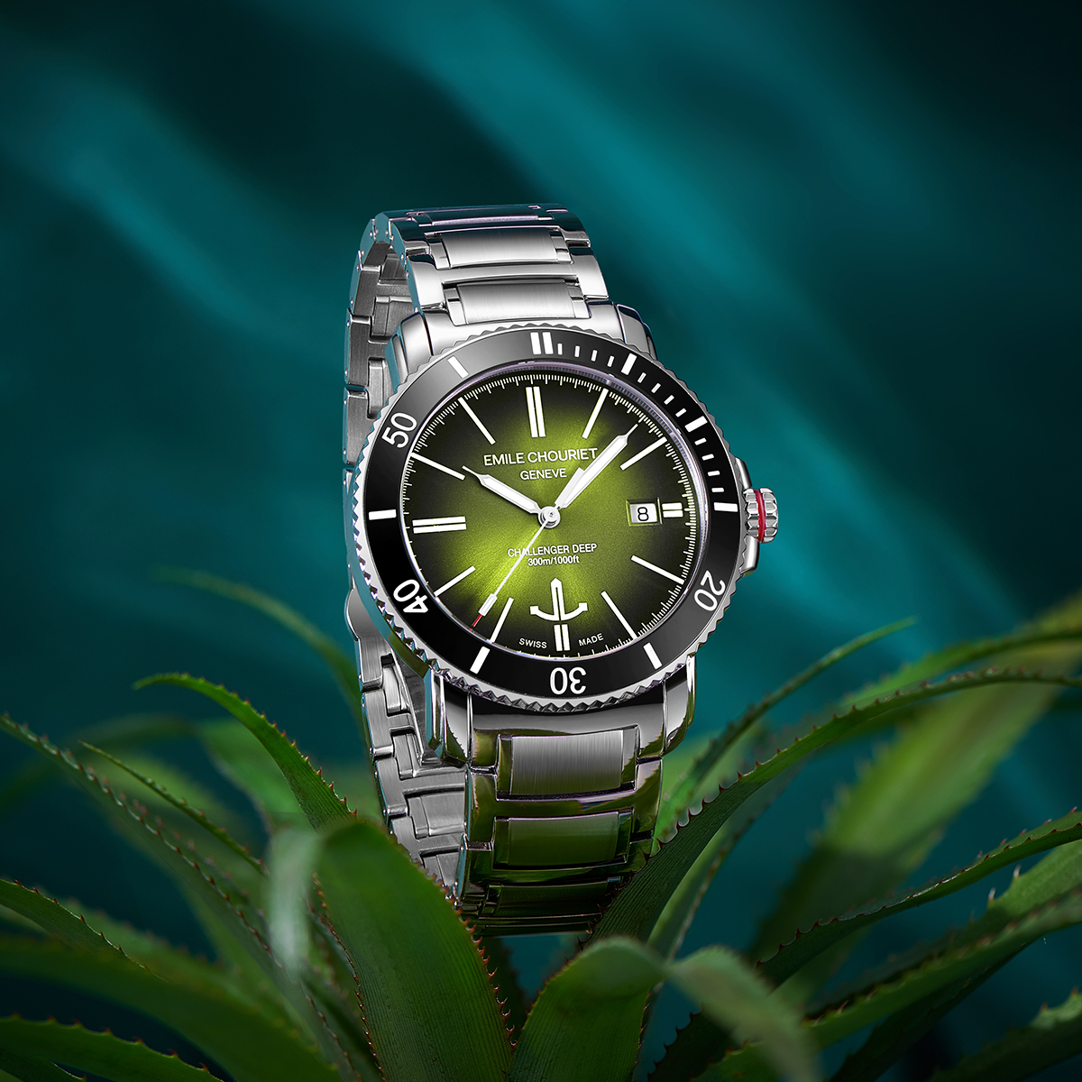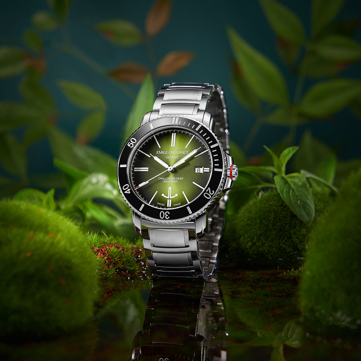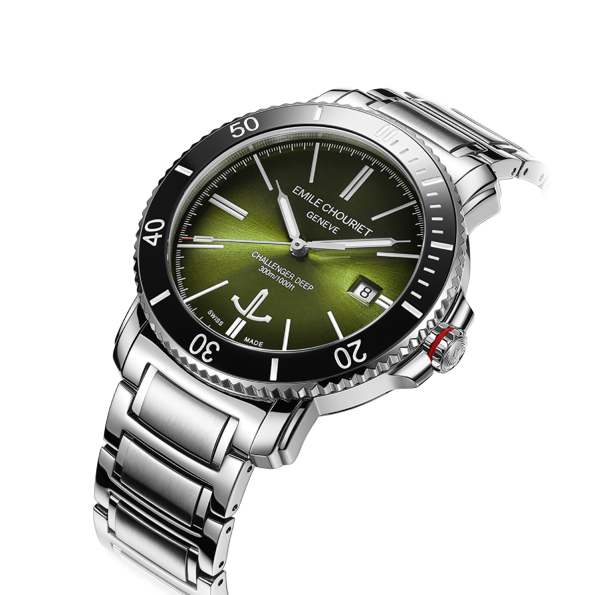 The EMILE-CHOURIET Challenger Deep Gent’s Green Dial Stainless Steel Bracelet Automatic Dive Watch 08.1169.G.6.AW.E8.6 will arrive in an EMILE CHOURIET brand watch box. In addition, it comes with a five year international warranty from the manufacturer. EMILE CHOURIET is an established and independent Swiss watch manufacturer, launched in 1998, in Geneva. For more information on the watch brand, please visit the manufacturer’s website. Furthermore, you can view our dedicated EMILE CHOURIET brand page for more designs from this brand.