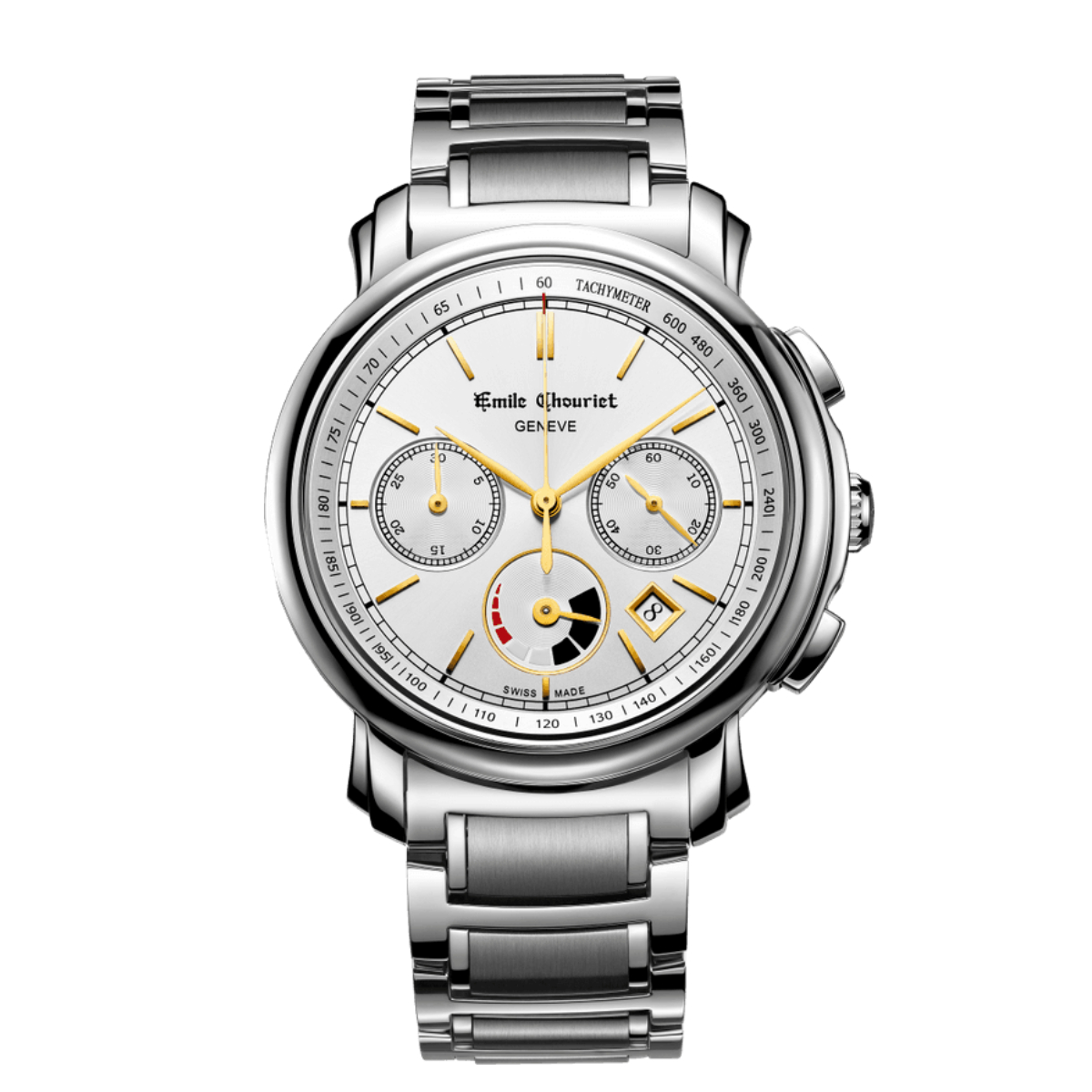 The EMILE-CHOURIET Lac Leman Gent’s Silver Dial Stainless Steel Bracelet Automatic Chronograph and Power Reserve Dress Watch 16.1168.G42.6.8.28.6 will arrive in an EMILE CHOURIET brand watch box. In addition, it comes with a five year international warranty from the manufacturer. EMILE CHOURIET is an established and independent Swiss watch manufacturer, launched in 1998, in Geneva. For more information on the watch brand, please visit the manufacturer’s website. Furthermore, you can view our dedicated EMILE CHOURIET brand page for more designs from this brand.