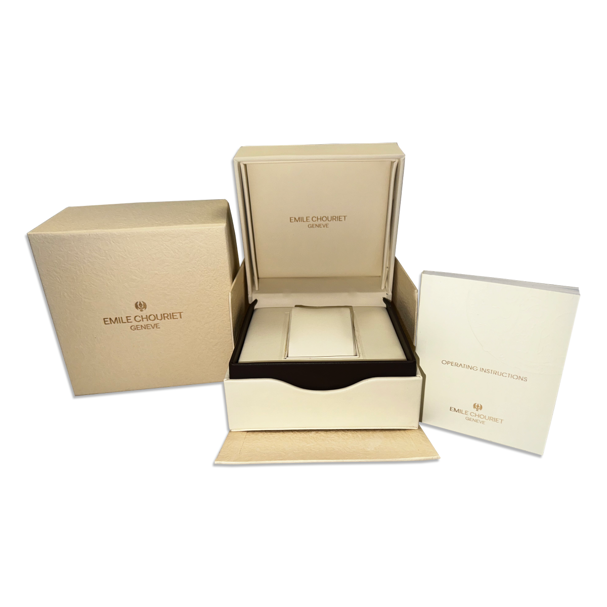 The EMILE-CHOURIET Lac Leman Gent’s White Dial Black Leather Strap Automatic Moon Phase Chronograph Sports Watch 23.1168.G42.6.6.28.2 will arrive in an EMILE CHOURIET brand watch box. In addition, it comes with a five year international warranty from the manufacturer. EMILE CHOURIET is an established and independent Swiss watch manufacturer, launched in 1998, in Geneva. For more information on the watch brand, please visit the manufacturer’s website. Furthermore, you can view our dedicated EMILE CHOURIET brand page for more designs from this brand.