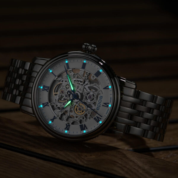 The EPOS Emotion Gents White Dial Stainless Steel Bracelet Automatic Skeleton Dress Watch 3390.155.20.20.30 is a stylish and elegant Swiss Made Luxury Watch. This stunning Skeleton Watch is the perfect choice for anyone looking to add a stylish touch to compliment their wardrobe. This watch has an Automatic Movement and is perfect for any occasion, from the work day to special events. This Men’s Stainless Steel Watch offers both form and functionality with a classic design that will always stay on trend.