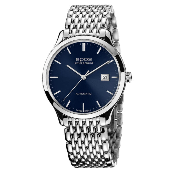 EPOS Originale Gent’s Blue Dial Stainless Steel Slimline Bracelet Automatic Dress Watch 3420.152.20.16.30
