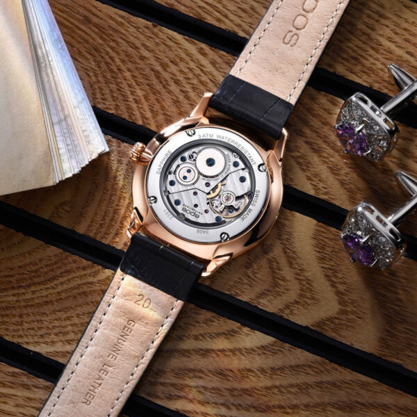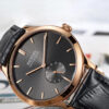 This EPOS Dress Watch 3408.208.24.14.15 has a round case and Polished bezel in Rose Gold PVD coated Stainless Steel. This Men’s Rose Gold Watch has EPOS’s signature ultra-thin ‘Originale’ Case design at just 5.9mm thin. The watch has a stunning Dark Grey dial with a sunray effect finish and a Small Seconds sub-dial. In addition, the dial has applied Rose Gold PVD coated Stainless Steel Baton hour markers. Furthermore, the dial has Rose Gold PVD coated Stainless Steel Hour, Minute and Second hands in a matching Baton design. Finally, the watch has a scratch-resistant Sapphire crystal and the onion-shaped Crown at the 3 o’clock position.