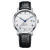 This EPOS Dress Watch 3387.152.20.28.15 has a Stainless Steel case in a round shape and a Polished bezel. This Men’s Stainless Steel Watch has EPOS’s signature slimline ‘Originale’ Case design with elegant and slimline lugs. The watch has a stunning Silver dial with a ‘Clous de Paris’ pattern and Date window at the 3 o’clock position. In addition, the dial has Black printed Roman numeral hour markers and minute indexes. Furthermore, the dial has Blue PVD coated Stainless Steel Hour, Minute and Second hands in a ‘Breguet’ design. Finally, the watch has a scratch-resistant Sapphire crystal and the Crown at the 3 o’clock position.