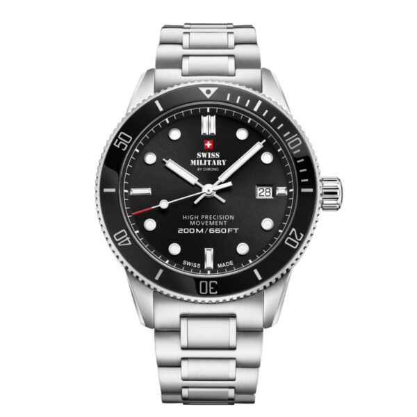 SSWISS MILITARY Gent’s Black Dial Stainless Steel Bracelet Classic Dive Watch SM34088.01